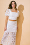 A sweater knit midi dress featuring square neckline, short sleeve and front button detail