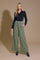 A tweed pant featuring front closure with jewel button, side pocket and wide leg