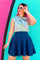 The ultimate fun and flirty skirt! Now available in a mystic ocean blue, this vintage style skirt features an elasticized back waist for ease of wear and a back zippered closure. Pair with one of our Isabel or boat neck tops for a perfect retro look!