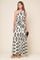 A printed woven maxi dress featuring one shoulder neckline with tie, elasticized waist with self sash tie and ruffled hemline.