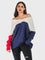 Perfee Contrast V-Neck Long Sleeve Knit Top