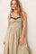 A printed woven midi dress featuring twisted cami bodice, straps, full skirt and smocked back with zipper closure