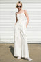 An exquisite woven top adorned with a classic shirt collar, elegant button down design, and delicate ruffled sleeves.