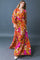 A printed woven maxi dress featuring surplice neckline, long sleeve with smocked cuff, smocked waist band and ruffled hemline