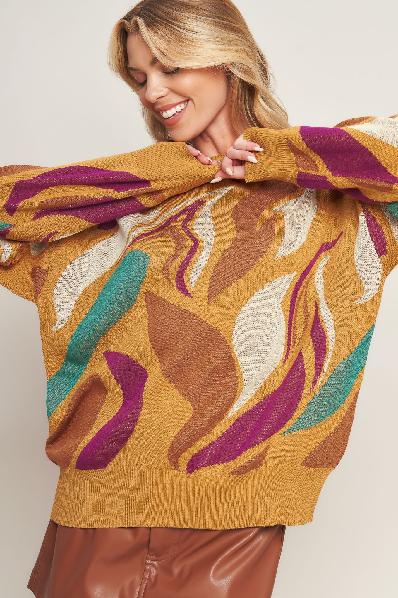 This READY TO ADORE SWEATER TOP is the perfect combination of comfort and style. It features a classic jacquard graphic and a bold crew neck that's ideal for any look. The drop shoulder and long sleeve provide a comfortable fit, making it perfect for casual occasions.