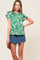 A printed woven top featuring round neckline, layered sleeve and back button closure