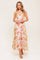 A floral printed woven midi dress featuring cami top, circle skirt and back zipper closure.