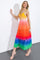 A printed woven midi dress featuring cami bodice with twisted and front cut out, straps, layered pleated skirt and back zipper closure