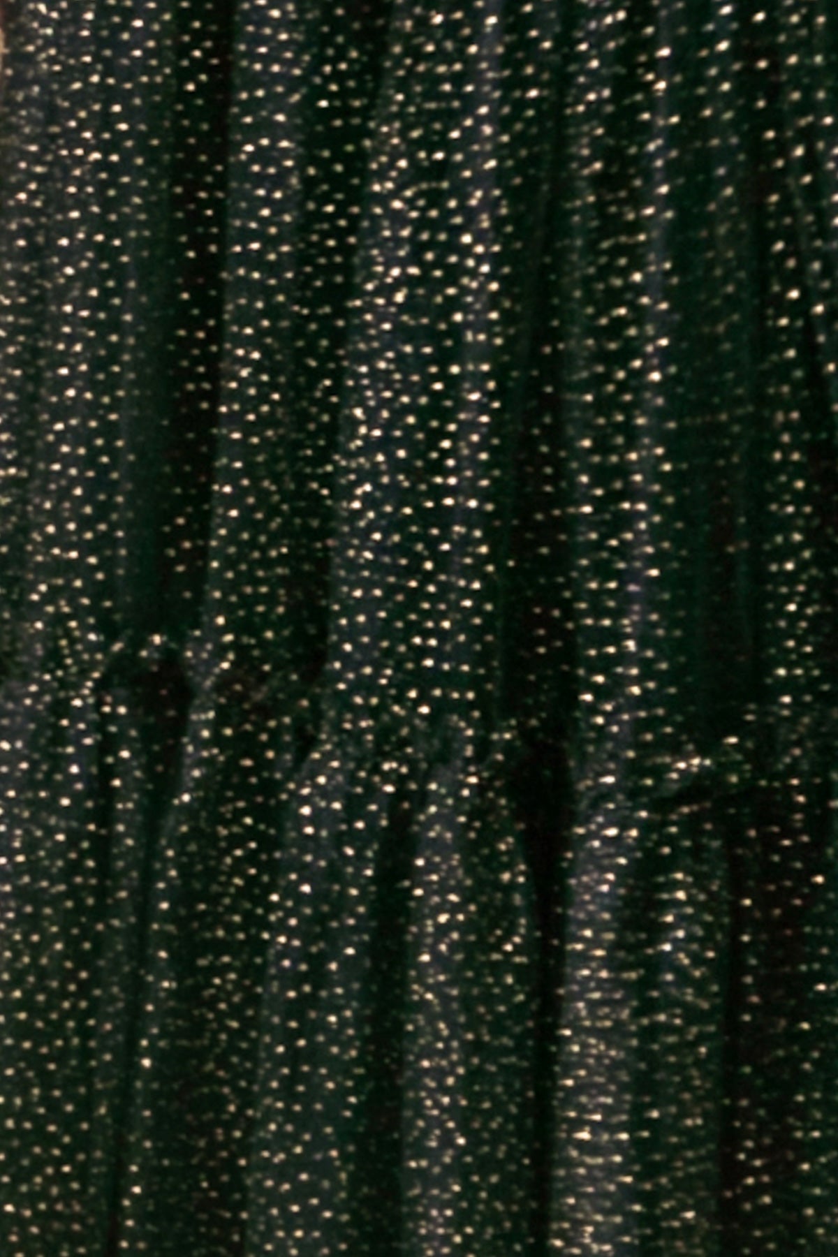 A tulle midi dress featuring one shoulder neckline with ruffles, tiered skirt and side zipper closure