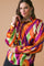 A printed woven top featuring shirt collar, long sleeve and button down