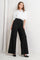 A striped black woven pant with front closure, side pocket and wide leg.