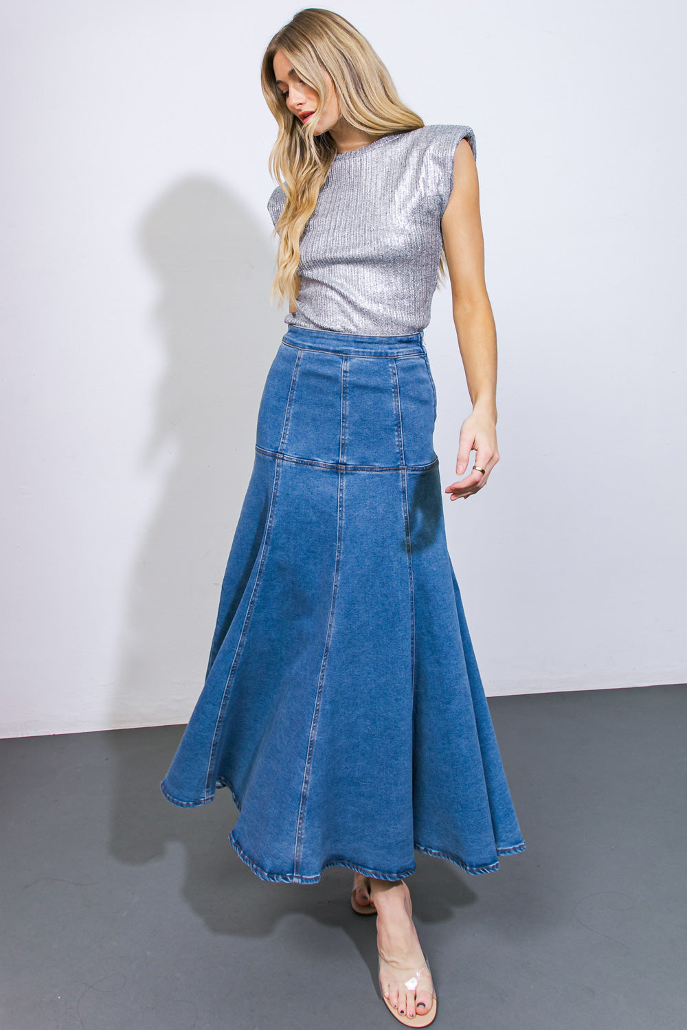Indulge in the luxurious elegance of our ribbed knit top, accented with an alluring foiled design. Sculptural shoulder pads and a sleek round neckline elevate this sleeveless piece to a work of art.