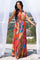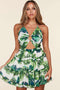 A large tropical flower print is displayed in this pink and coral maxi dress. Featuring a halter neck, sexy cutout details, a smocking panel back, and a long skirt with a split on the side.