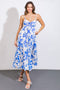 A solid woven pant featuring front closure with side belt, side pocket and wide leg. Matching jacket FJ1103