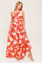 A printed woven romper featuring shirt collar, button down, short sleeve and elasticized waist with tie