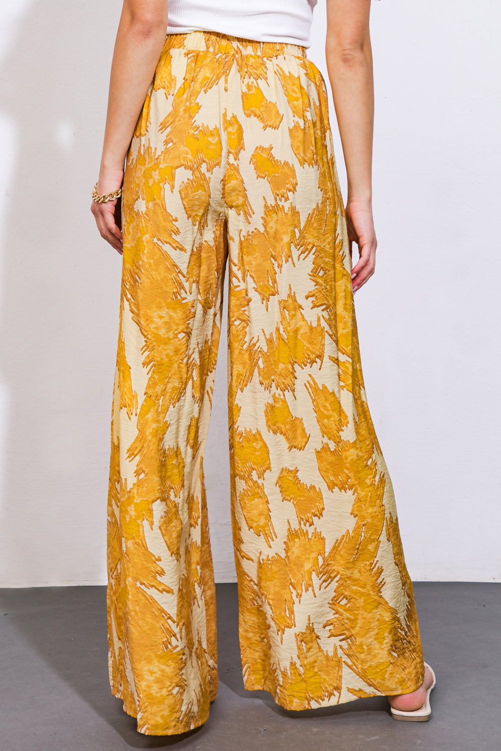 Luxurious and sophisticated, our woven pant boasts front pleats, a wide leg, and an elasticized back waistband for ultimate comfort and style. This printed piece is a work of art, designed to elevate your wardrobe with its elegant silhouette and exquisite details.. Matching top IT12766