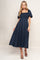 A jacquard woven midi dress featuring square neckline, short puff sleeve, full skirt and back zipper closure