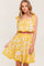 A printed woven top and skirt set. Top featuring straight neckline, shoulder tie and elasticized waist. Full skirt with side zipper closure.