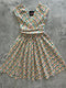 A vintage style piece with fun, modern details; our midi dress is now available in our umbrella print. Made from 100% cotton, this classic 1950's inspired dress features a high neckline, longer length swing skirt with hidden side pockets, and back zippered closure. Shown with the retro style cinch belt in red.