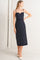 A solid woven midi dress with embellishment, sweetheart neckline, straps, pencil skirt and back zipper closure