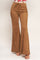 A faux suede pant featuring front lace up detail, flare leg and back zipper closure