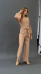 A printed woven top featuring shirt collar, button down and long sleeve. Matching pant YOU NEVER CAN TELL WOVEN TOP