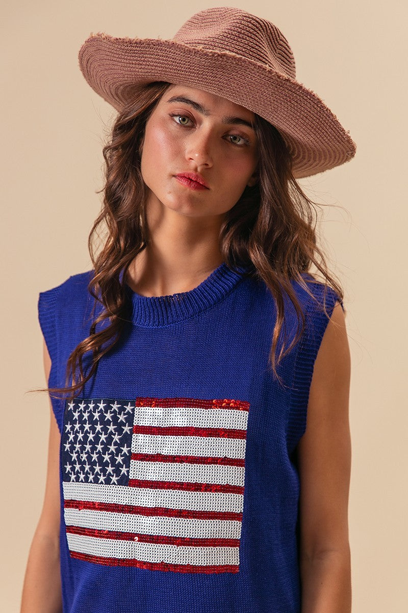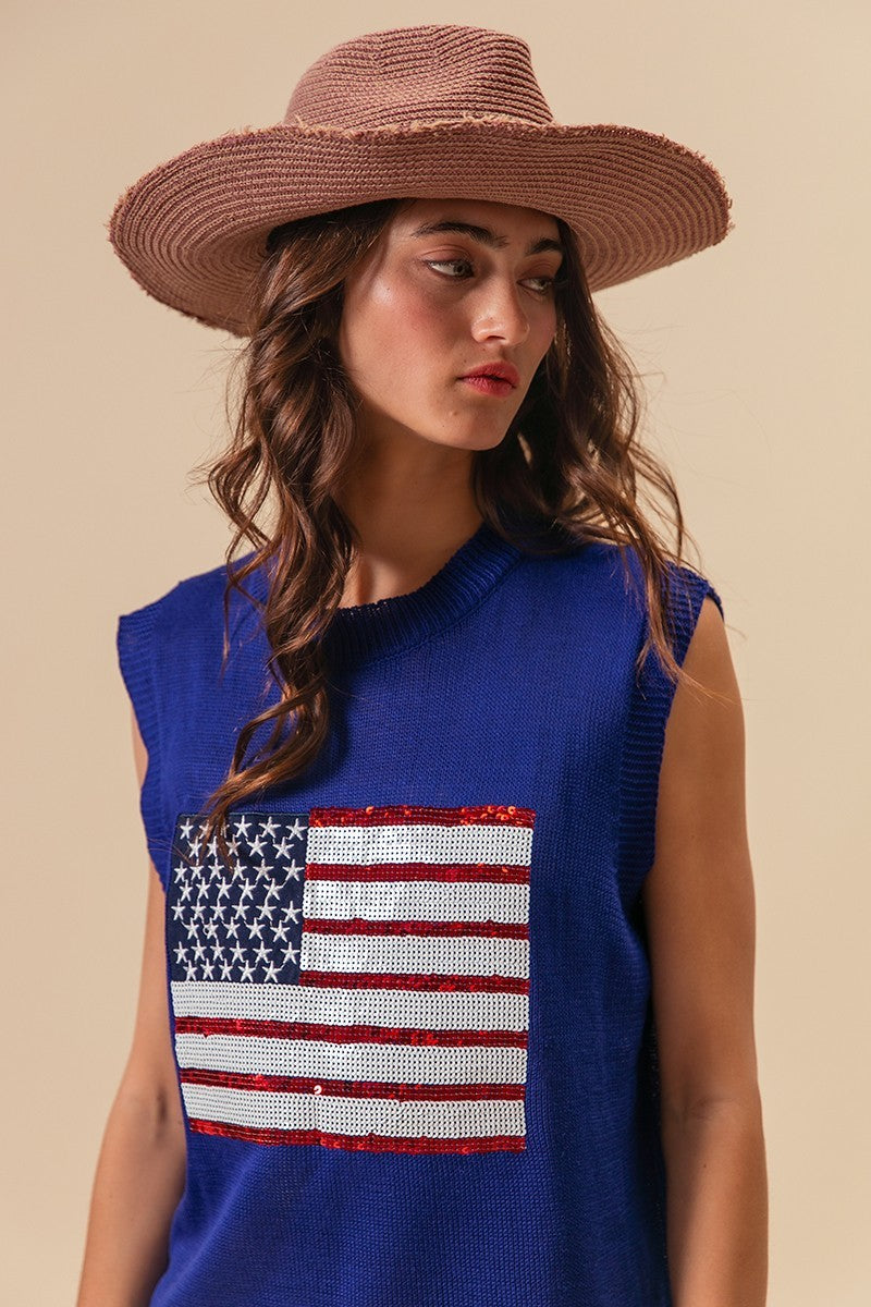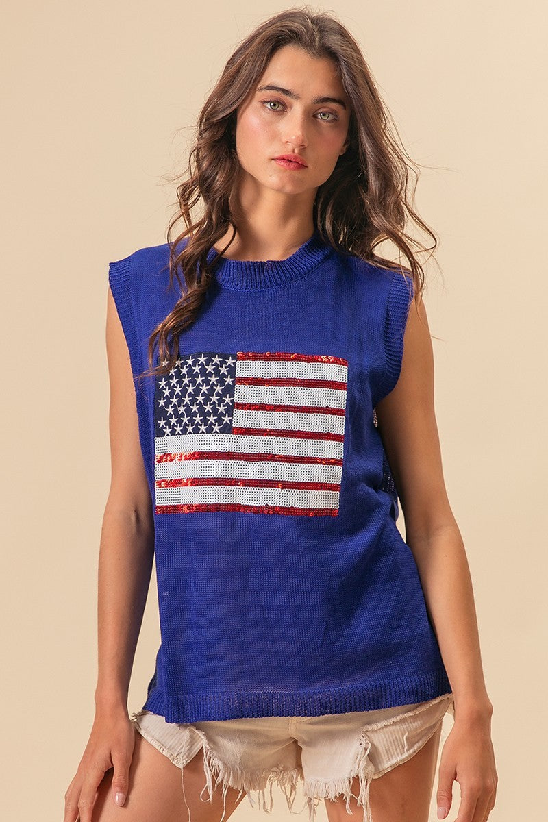 Add a touch of patriotic sparkle to your outfit with the American Flag Sequins Patch Knit Vest. This eye-catching vest features a sequined American flag patch that adds a fun and festive element to your look. Perfect for celebrating special occasions, holidays, or showing off your patriotic spirit. The knit construction ensures comfort and versatility, making it easy to layer over tops or dresses. Stand out in style and make a statement with this unique and trendy knit vest.