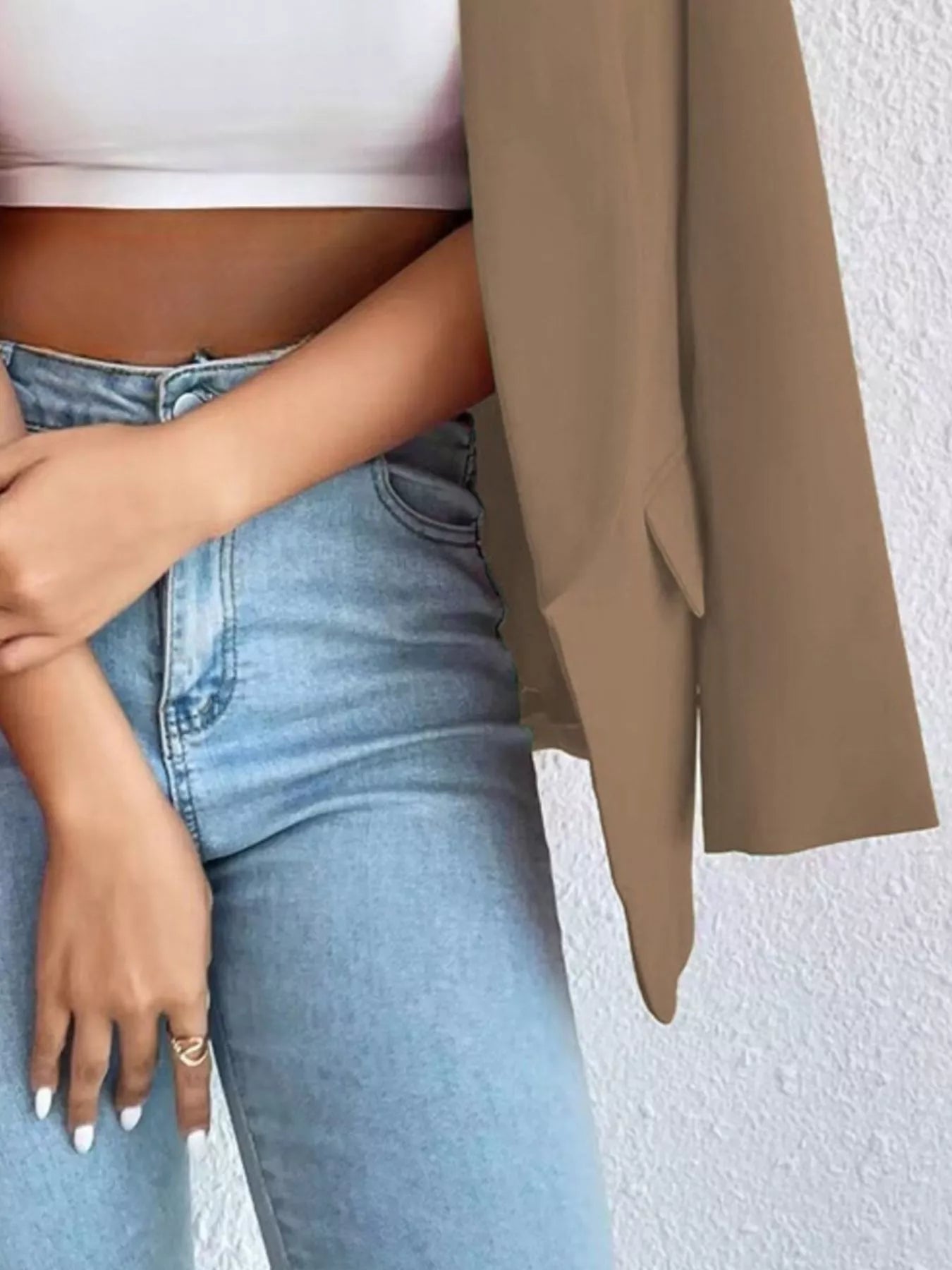 Full Size Open Front Long Sleeve Casual Blazer Plus Size