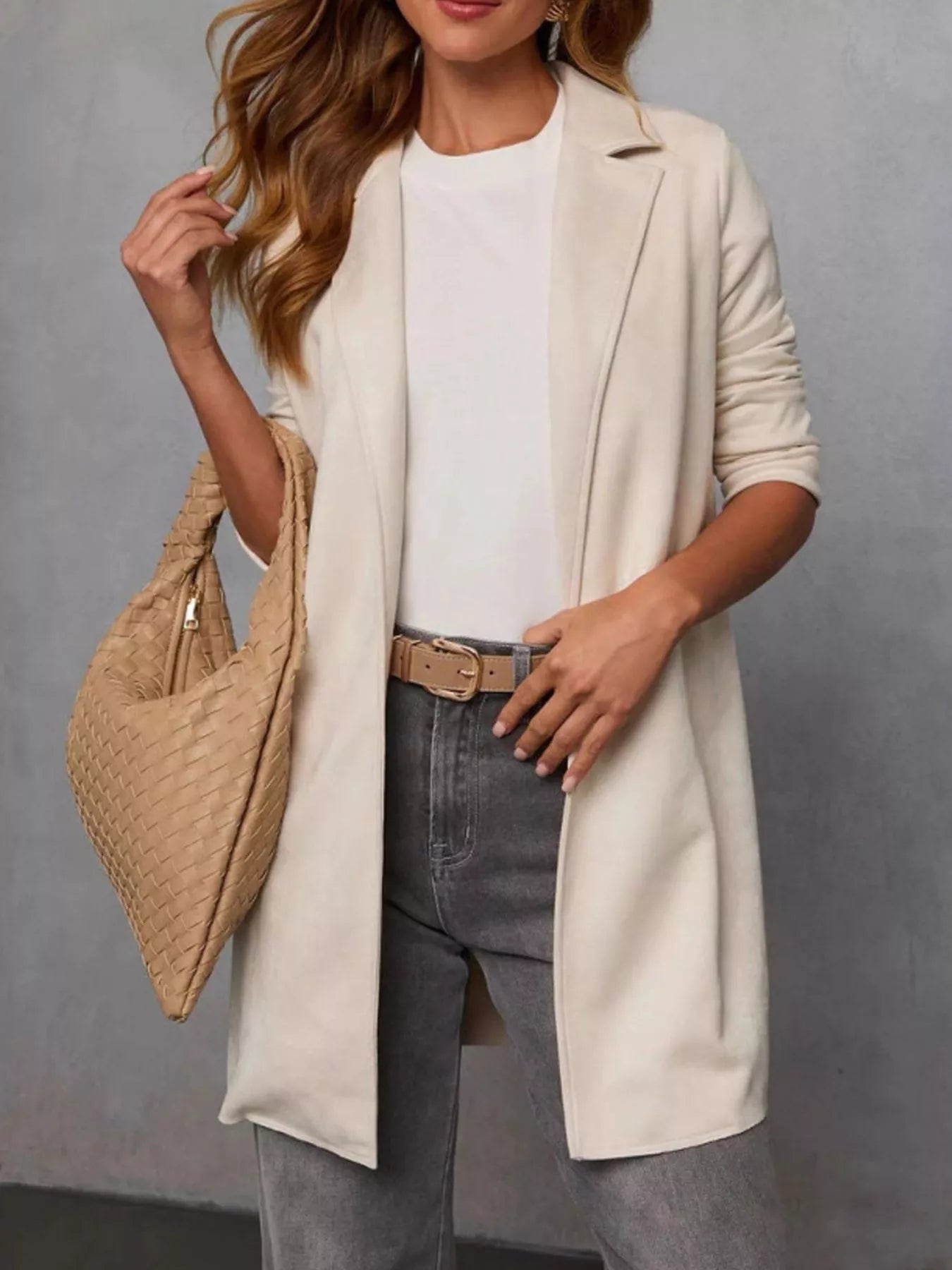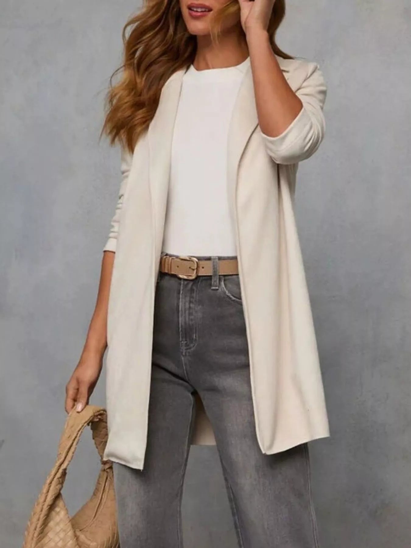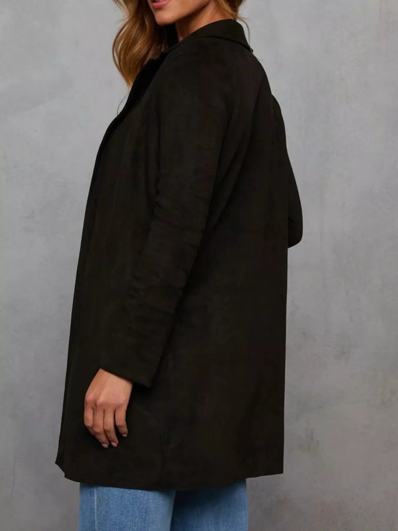 Full Size Open Front Longline Outerwear Plus Size