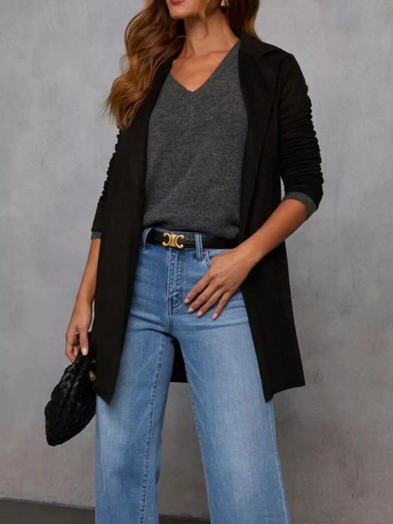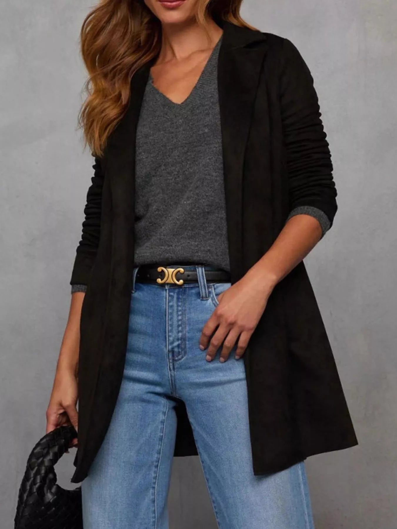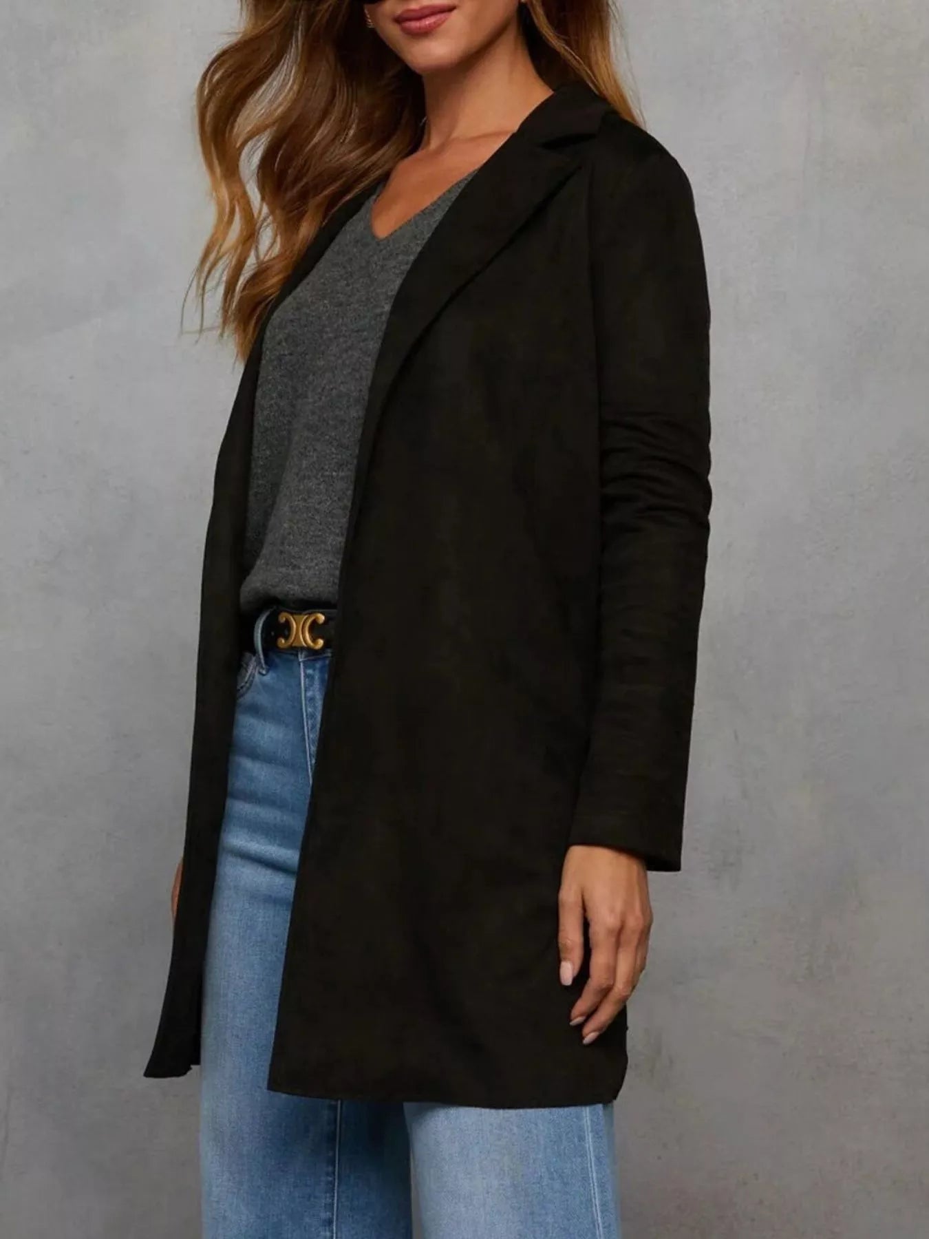 Full Size Open Front Longline Outerwear Plus Size