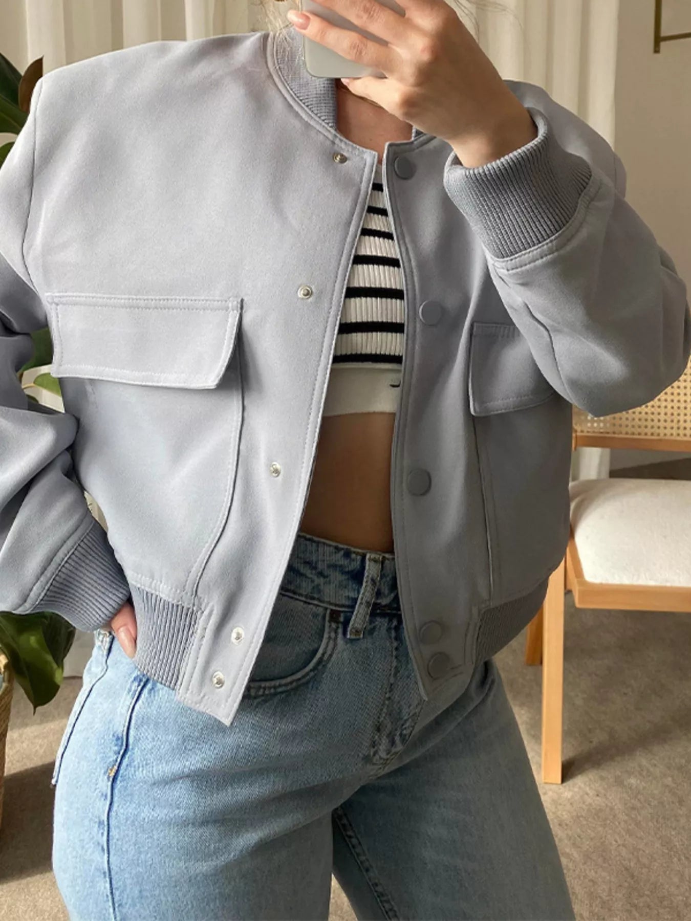 Full Size Snap Down Long Sleeve Jacket Plus Size
