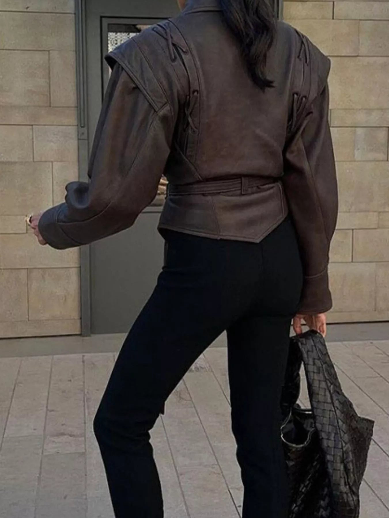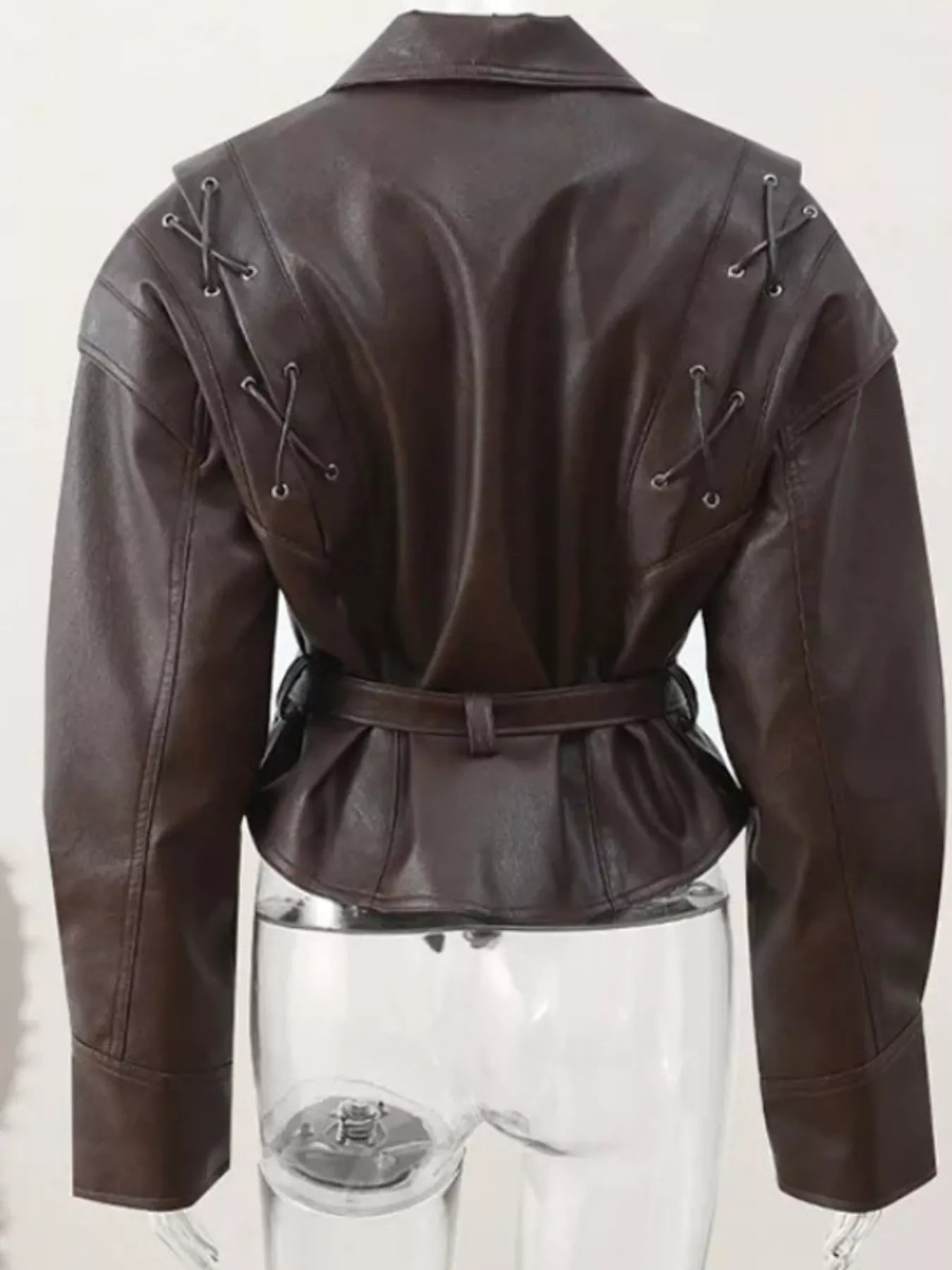 Vintage Style Tie Waist Leather Jacket