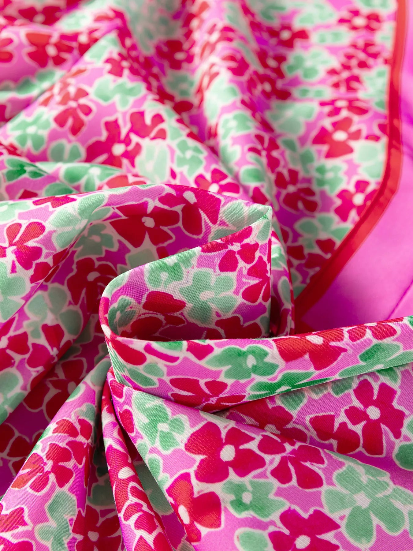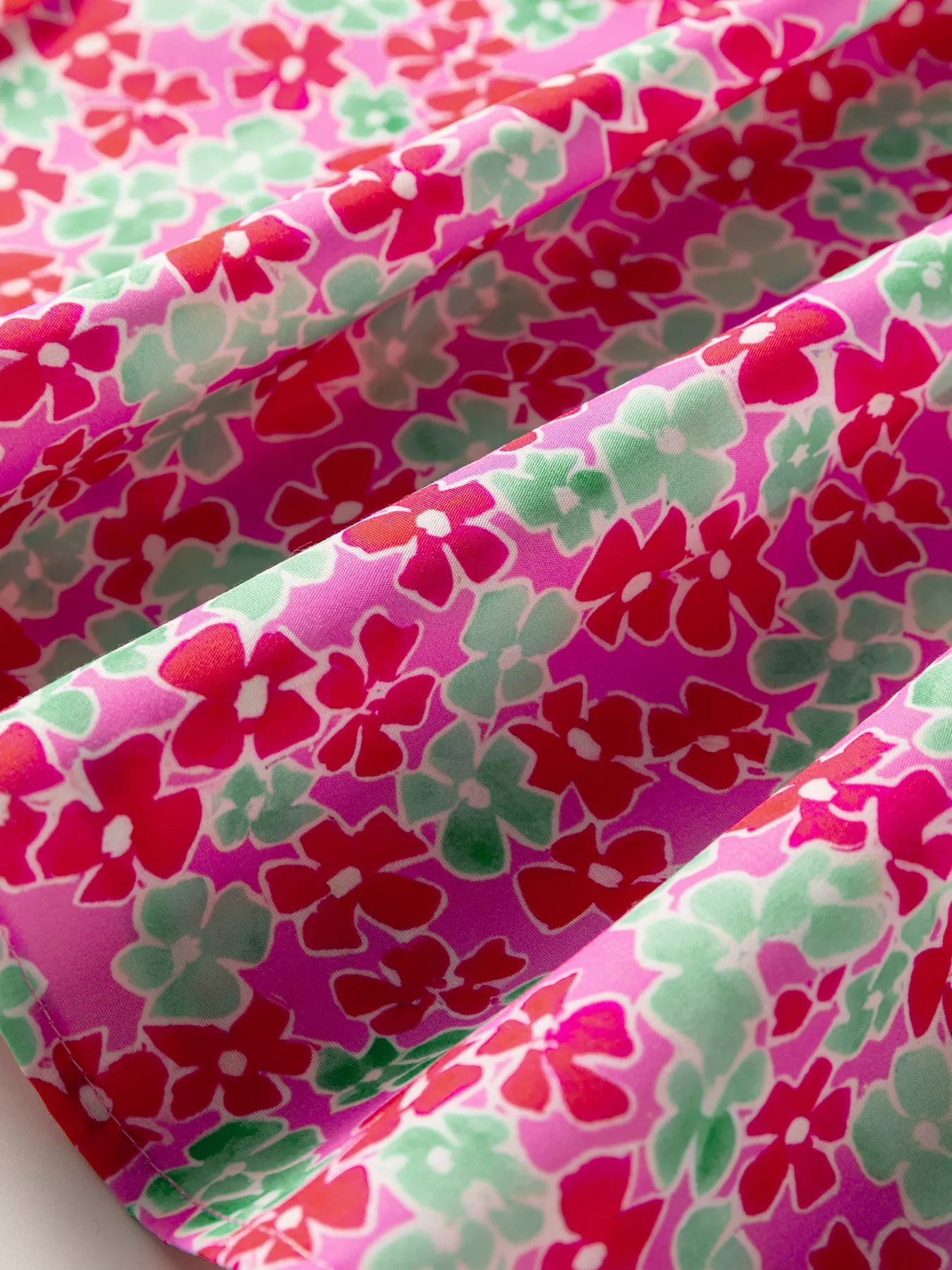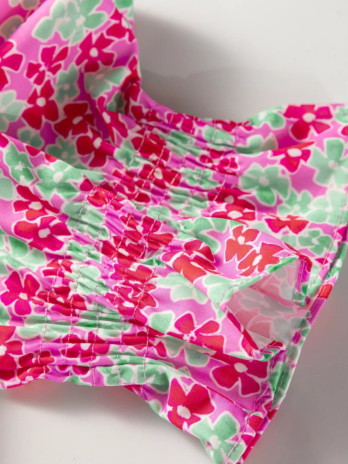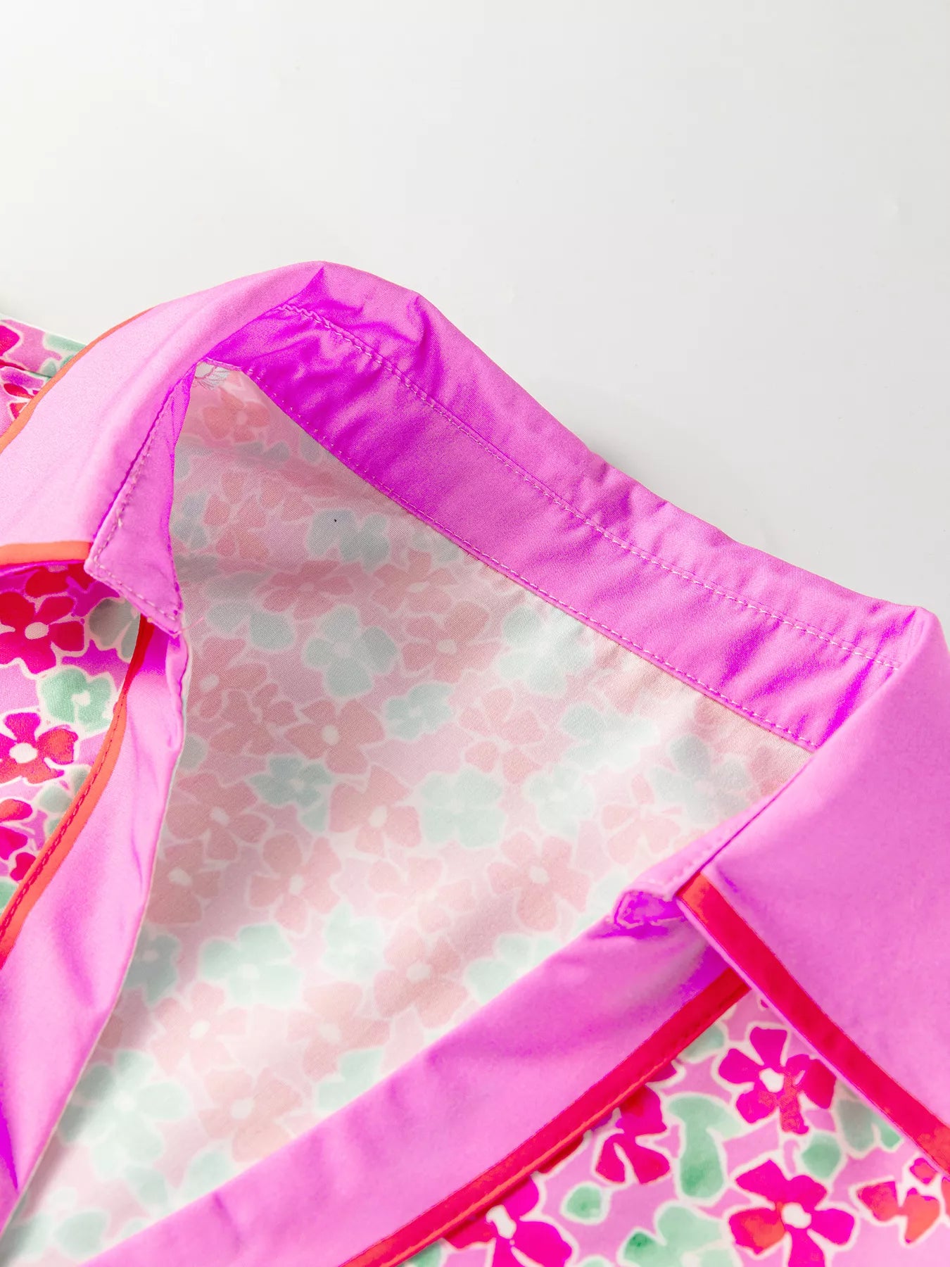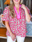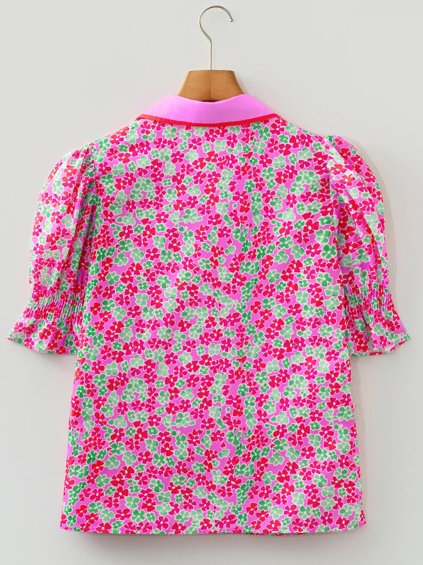 Floral Collared V Neck Short Puff Sleeve Blouse
