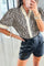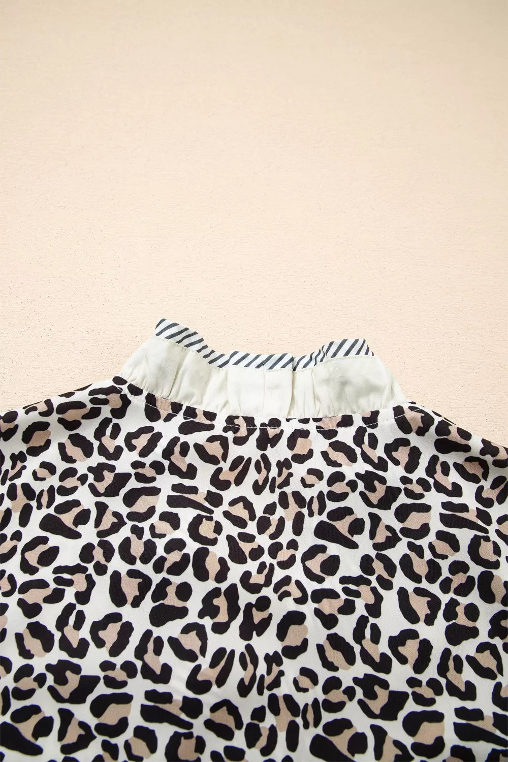 Leopard Print Striped Ruffled Color Block Trim V Neck Short Sleeve Blouse