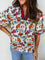 Multicolour Contrasted V Neckline Floral Puff Short Sleeve Blouse