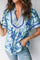 Ricrac Trim Slit V Neck Short Sleeve Floral Blouse