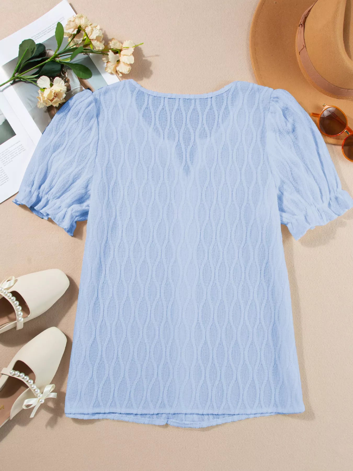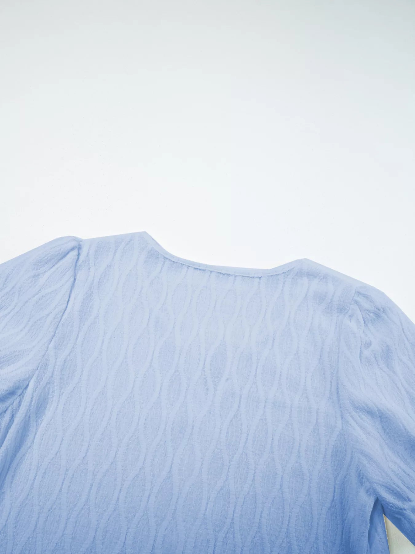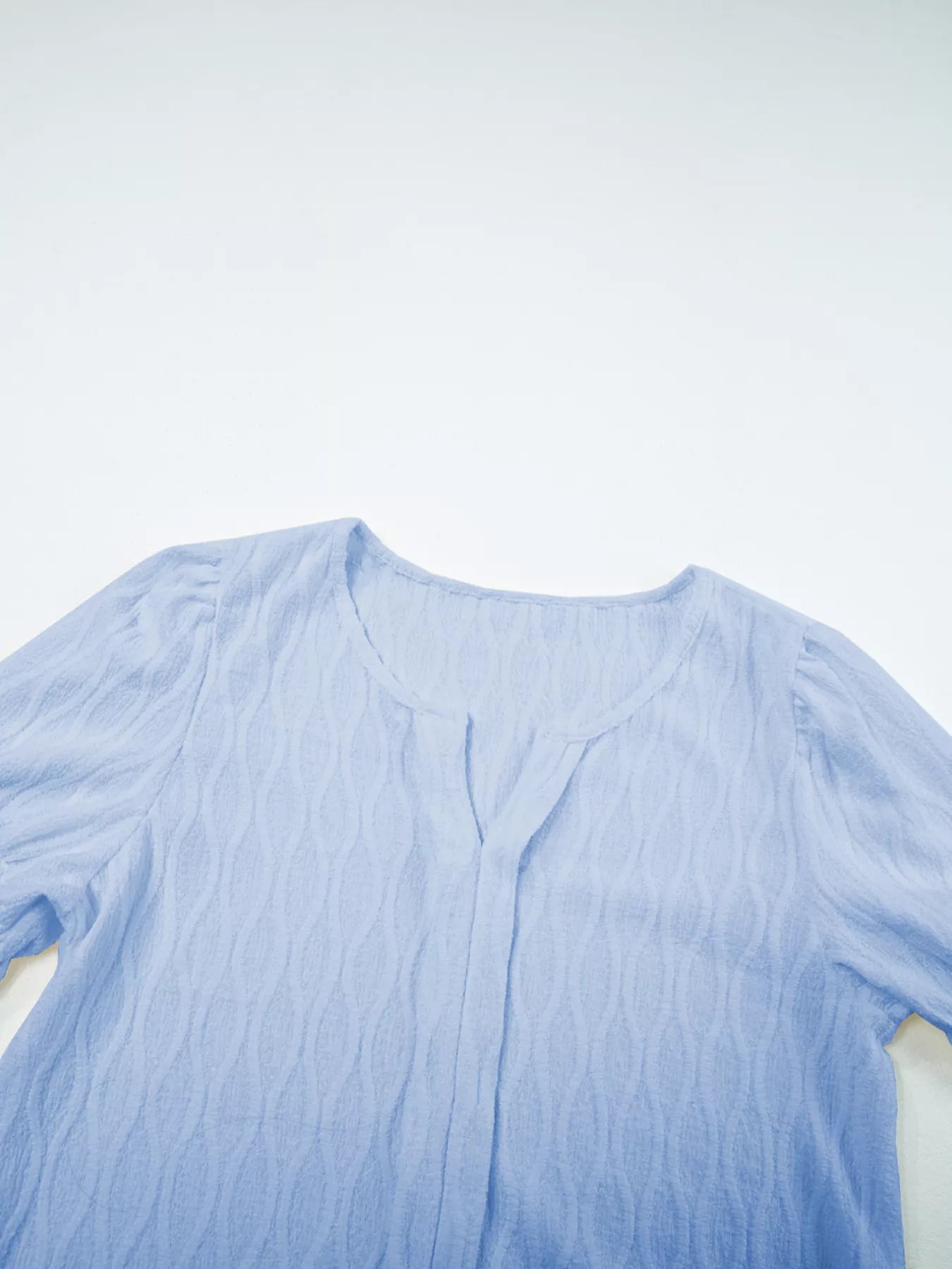 Solid Color Textured Notched Neck Puff Sleeve Blouse