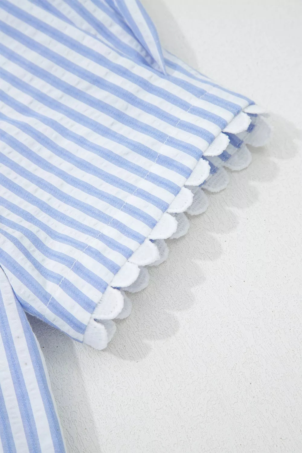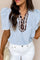 Stripe Ricrac Trim Short Puff Sleeve Leopard Patchwork Collar V Neck Blouse