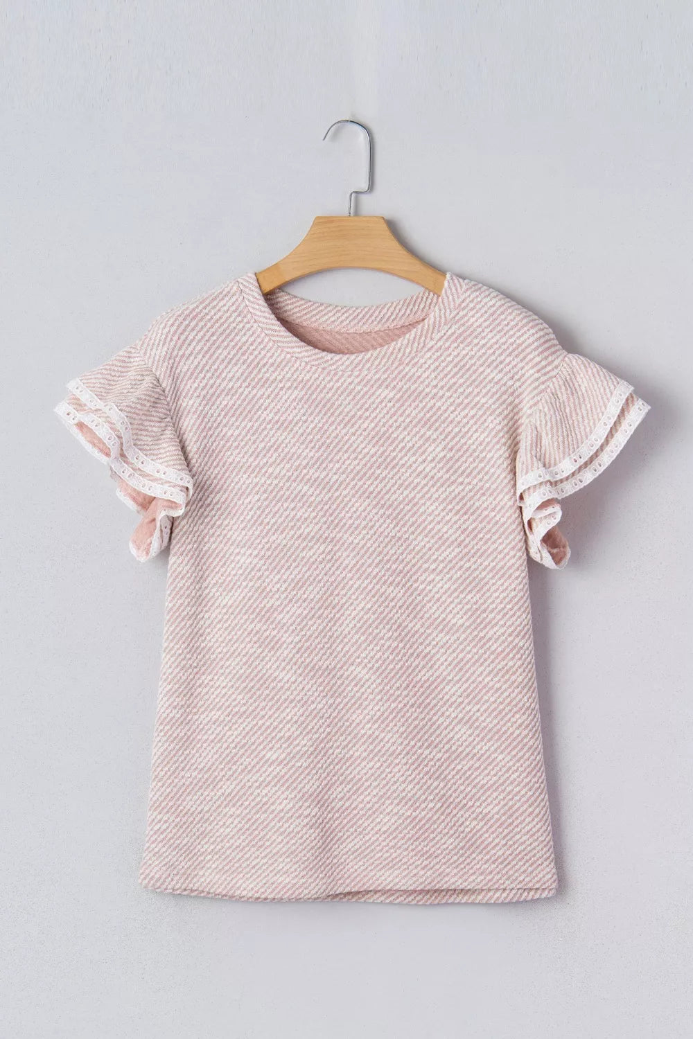 Twilled Print Lace Trim Ruffled Short Sleeve Blouse