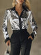 Printed Button Up Satin Shirt$53.99