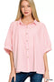 Umgee Scalloped Trim Blouse with Puff Sleeves