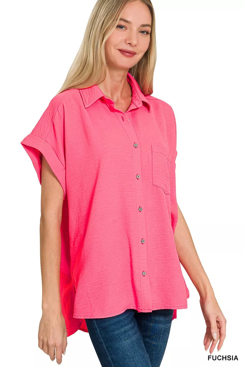 Zenana Woven Airflow Button Down Shirt