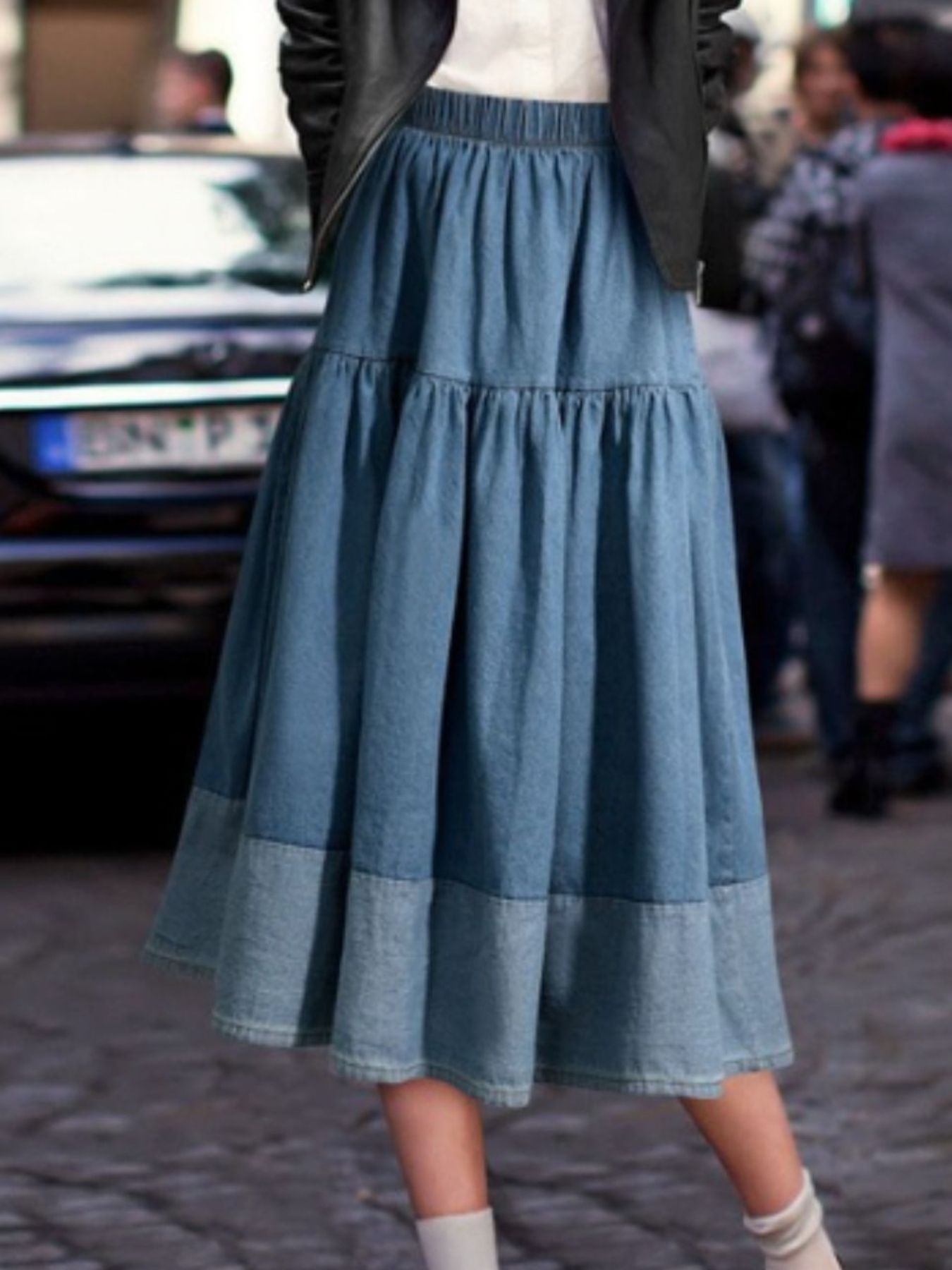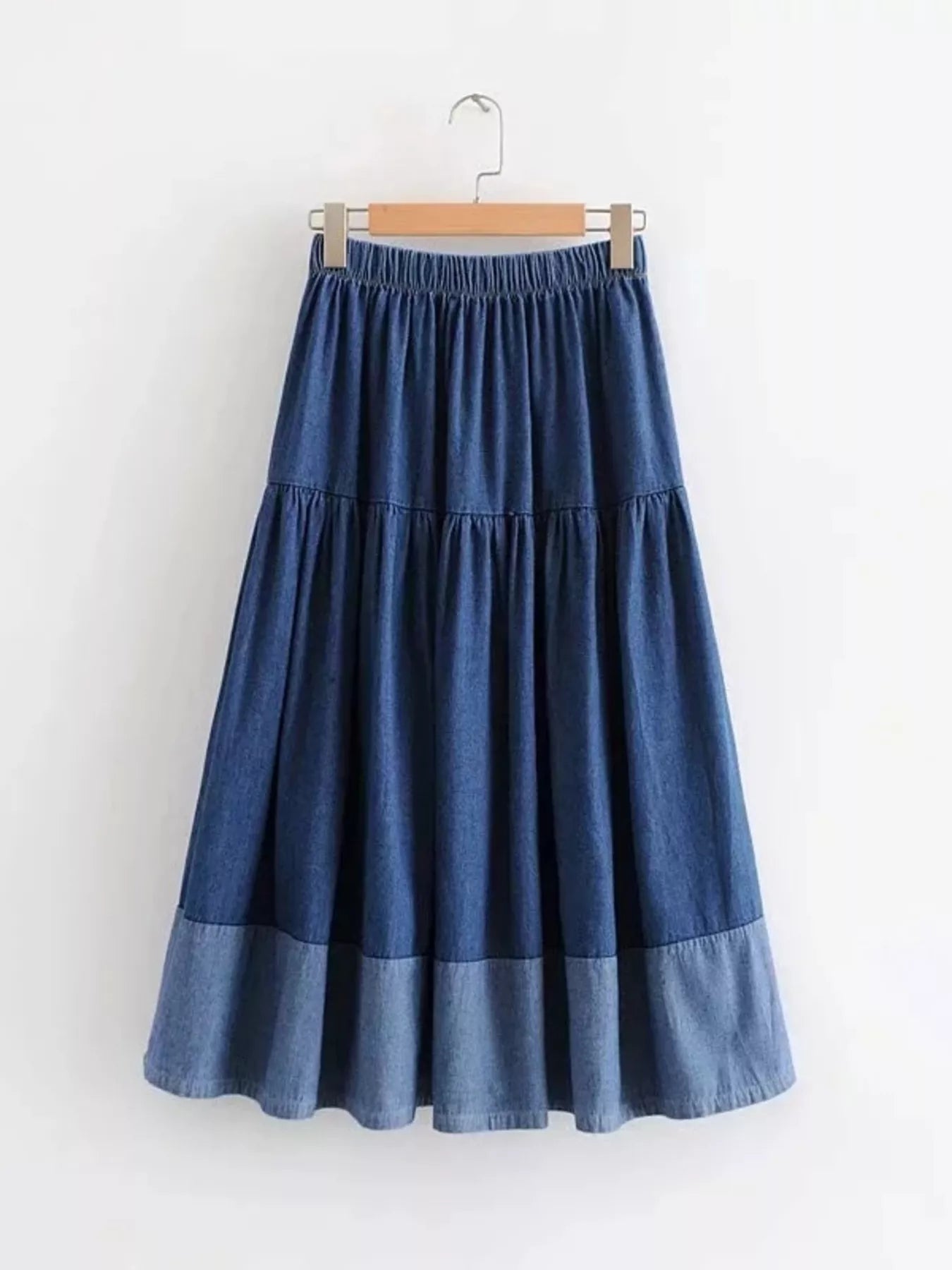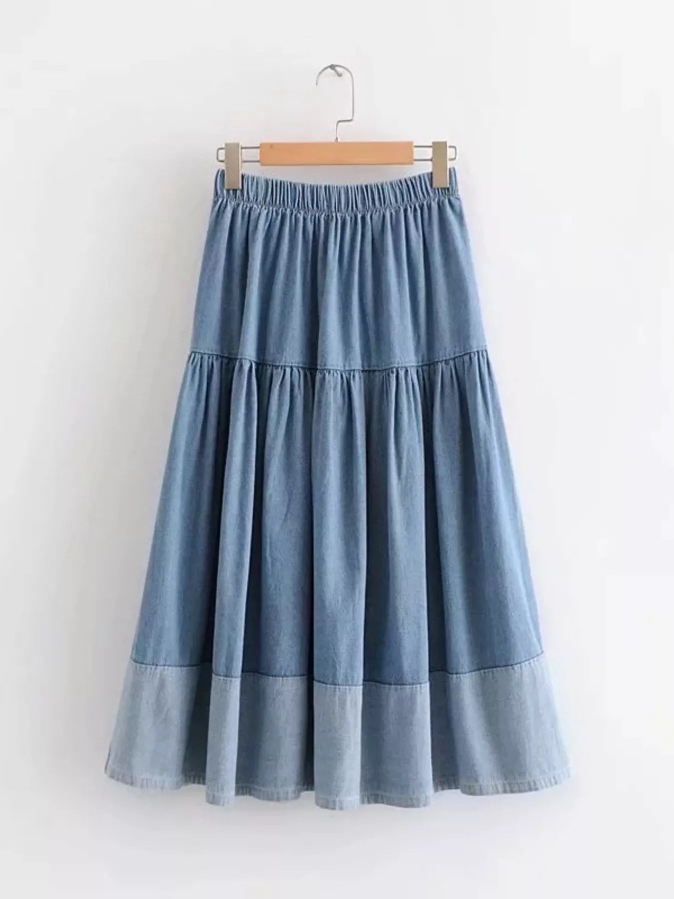 Tiered Denim Midi Skirt