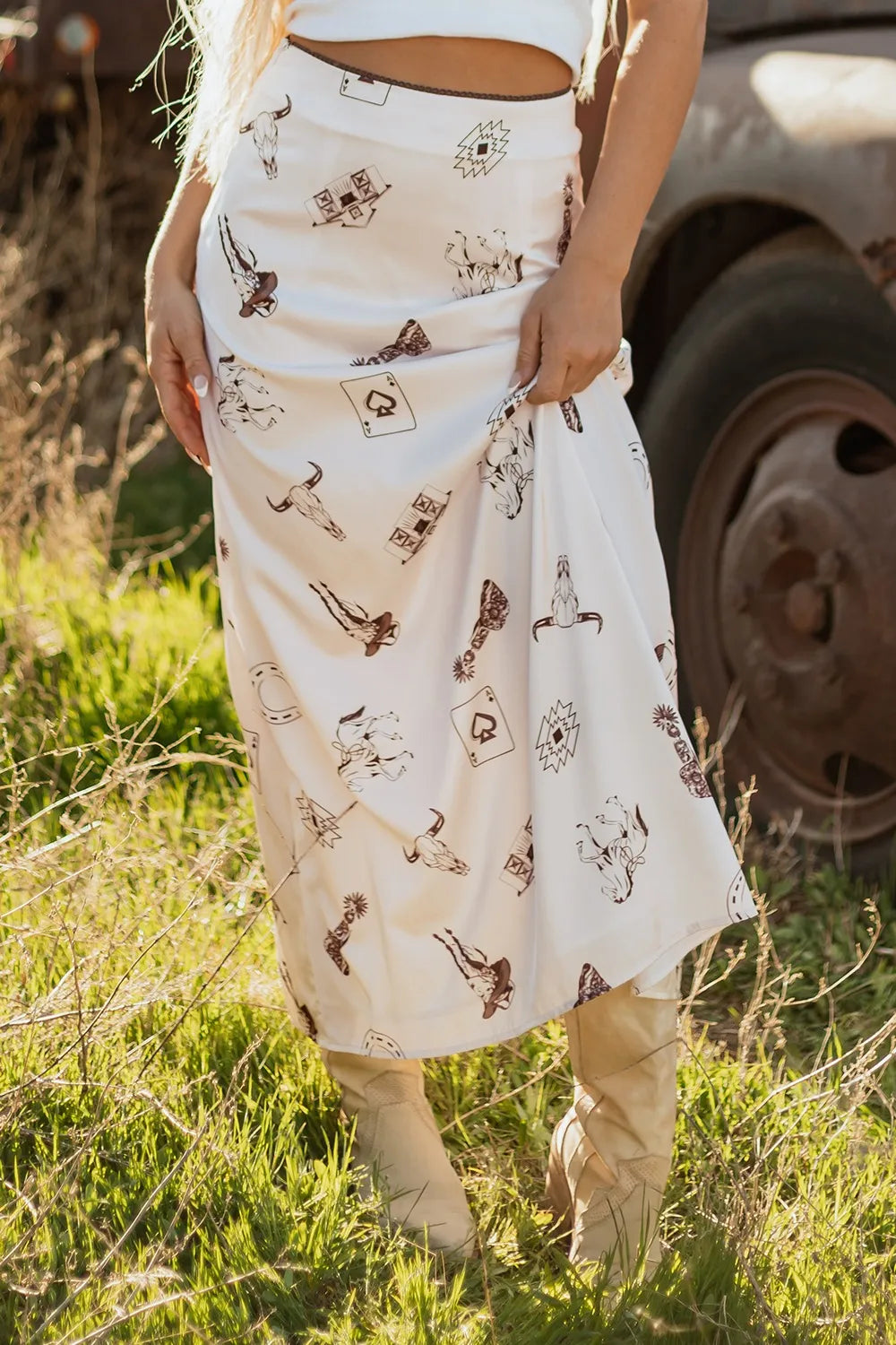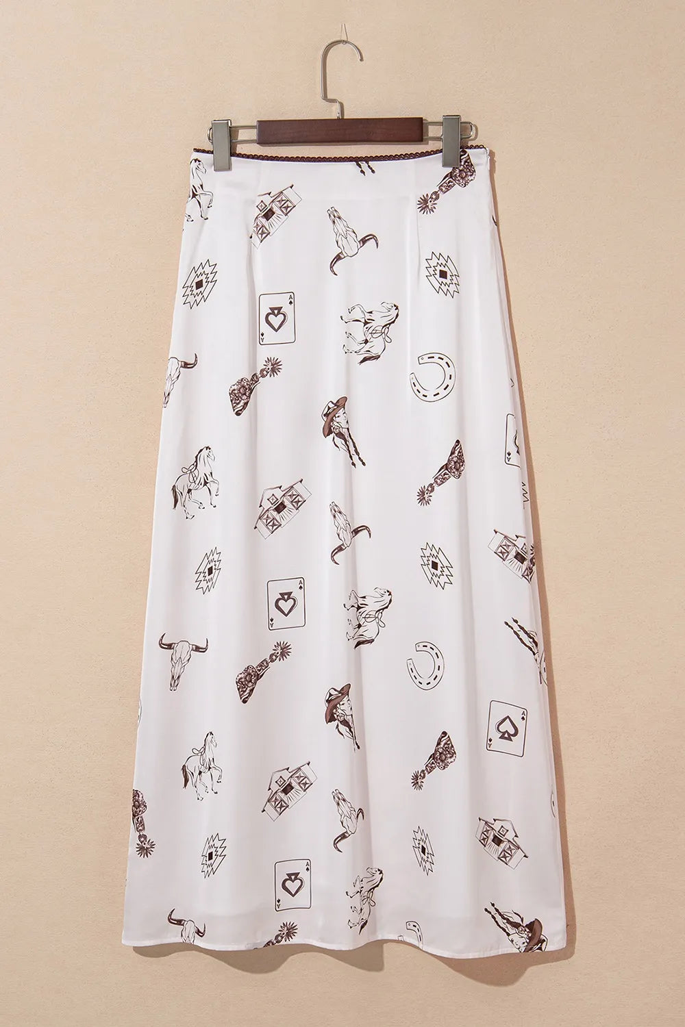 Western Print Satin Long Skirt