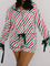Stripe Contrast Velvet Ribbon Knot Christmas 2pcs Pajama Set