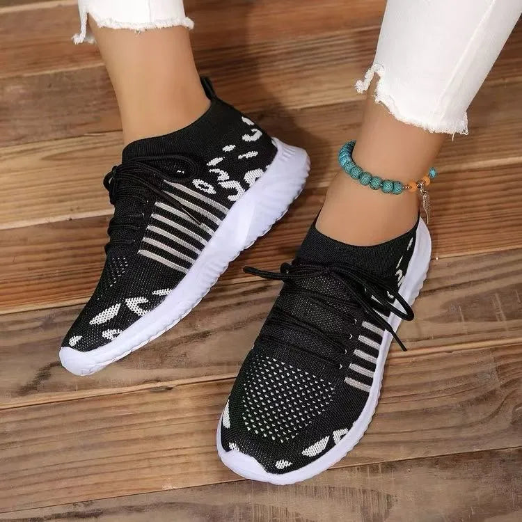 Breathable Leopard Mesh Lace Up Sneakers