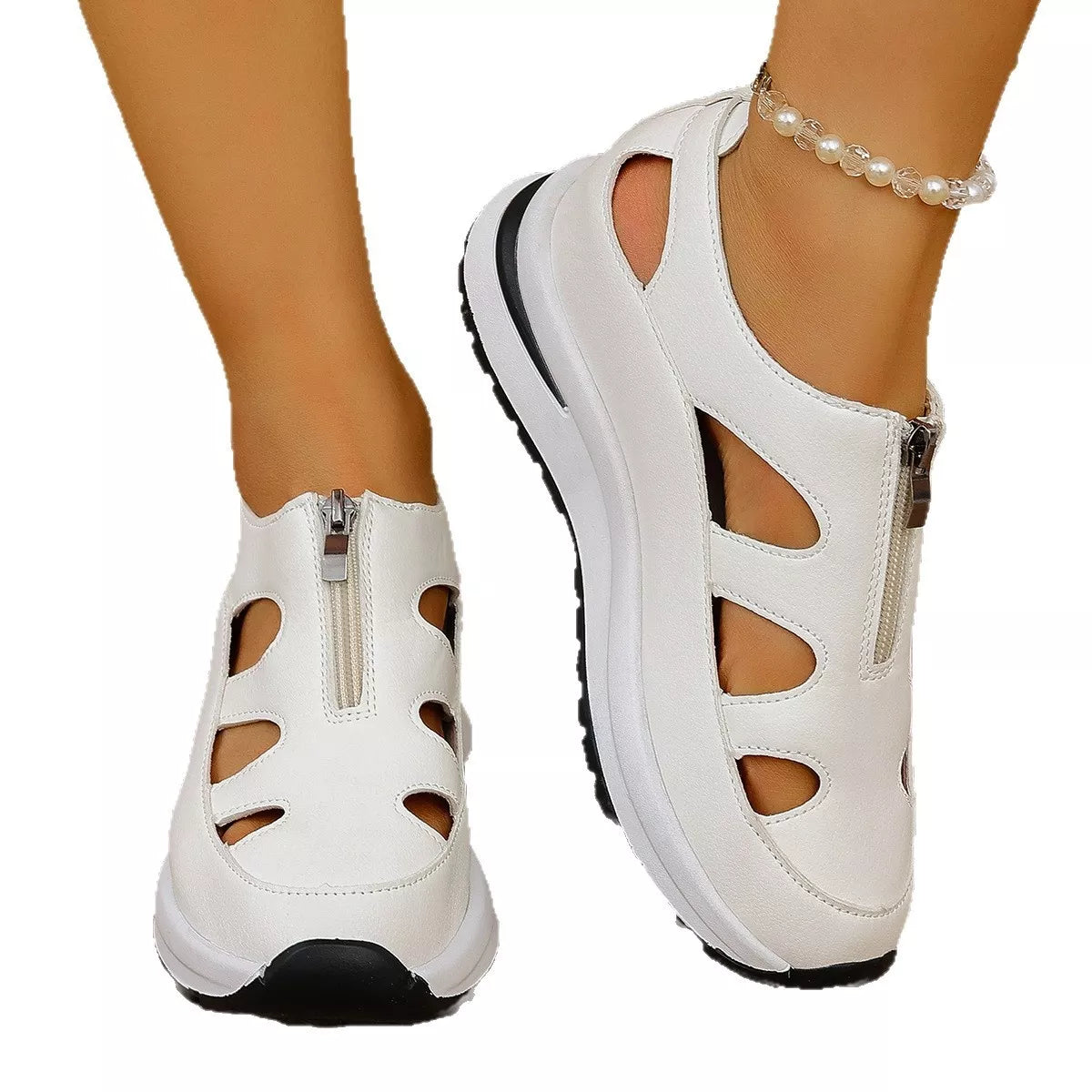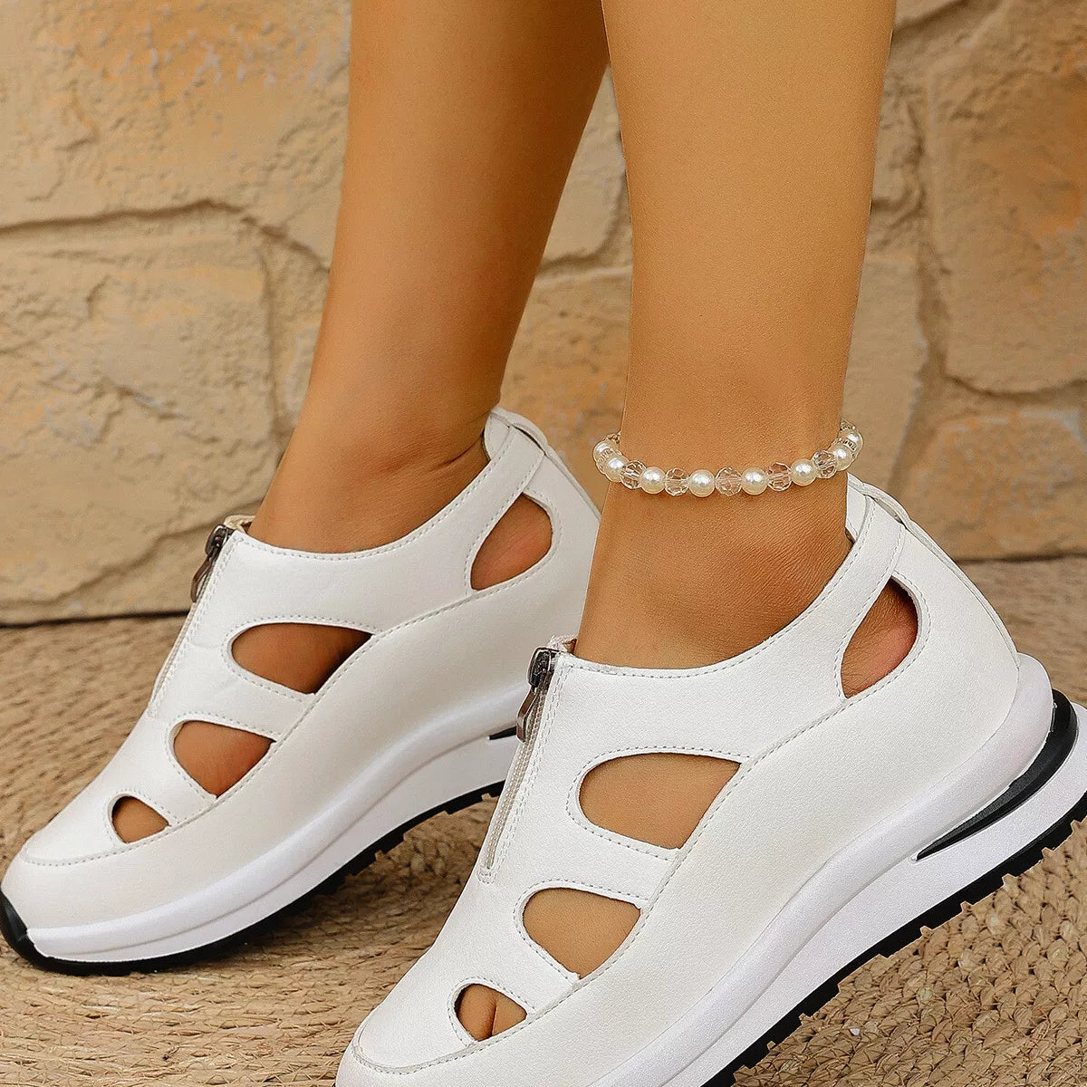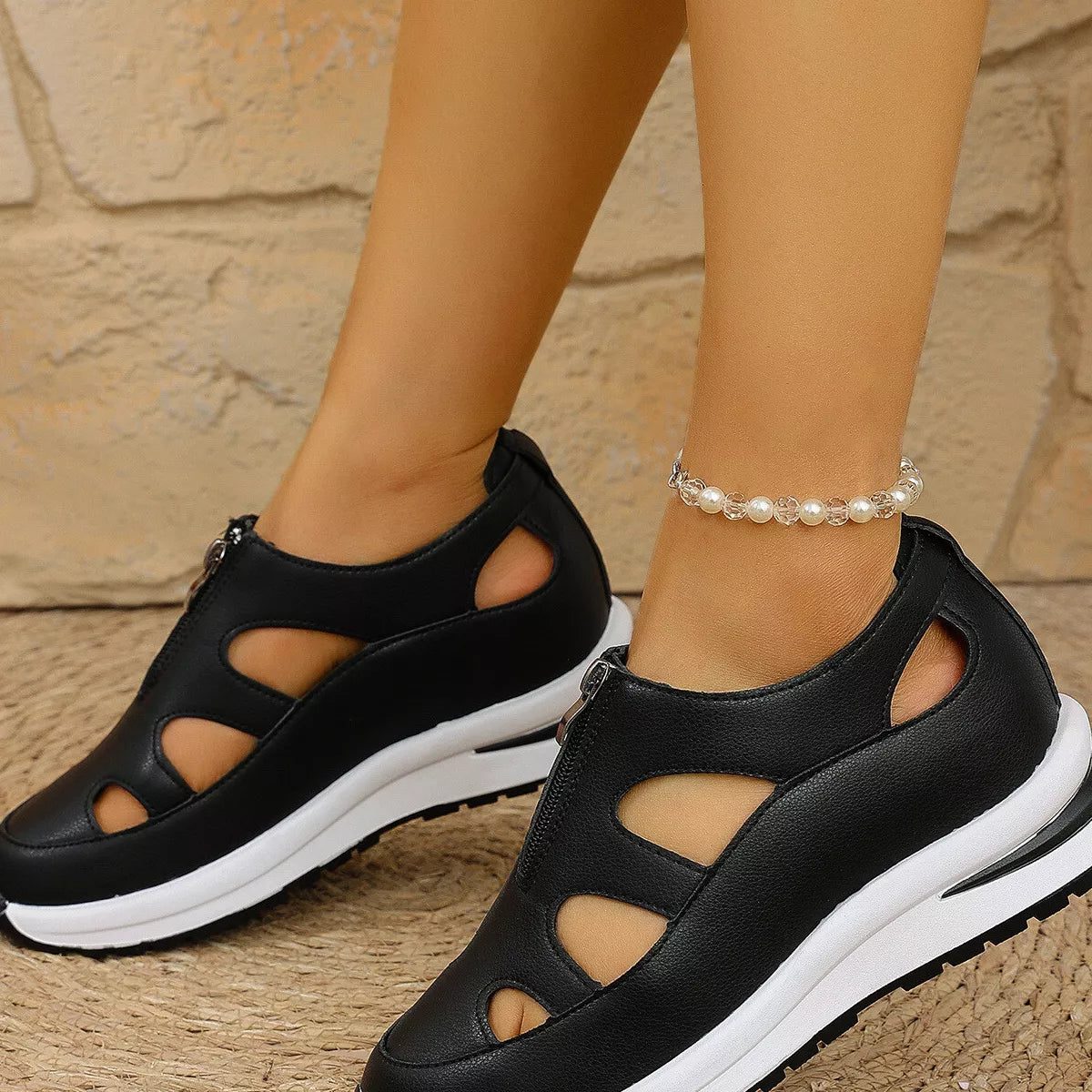 Cutout Zipper Wedge Sneakers