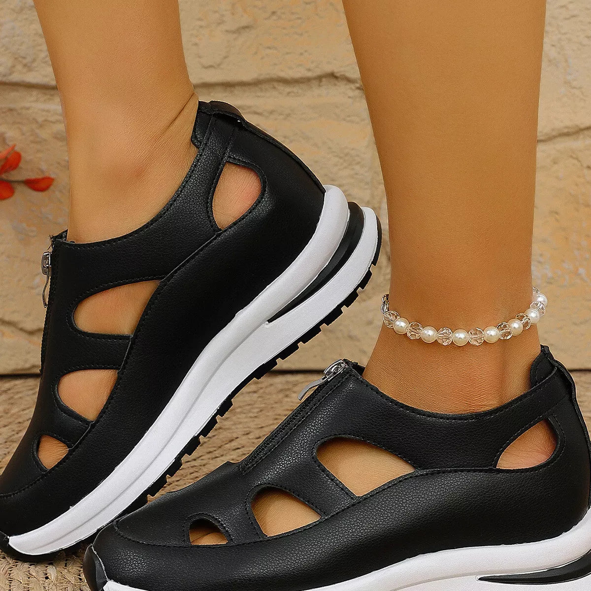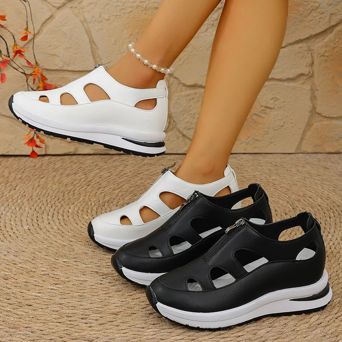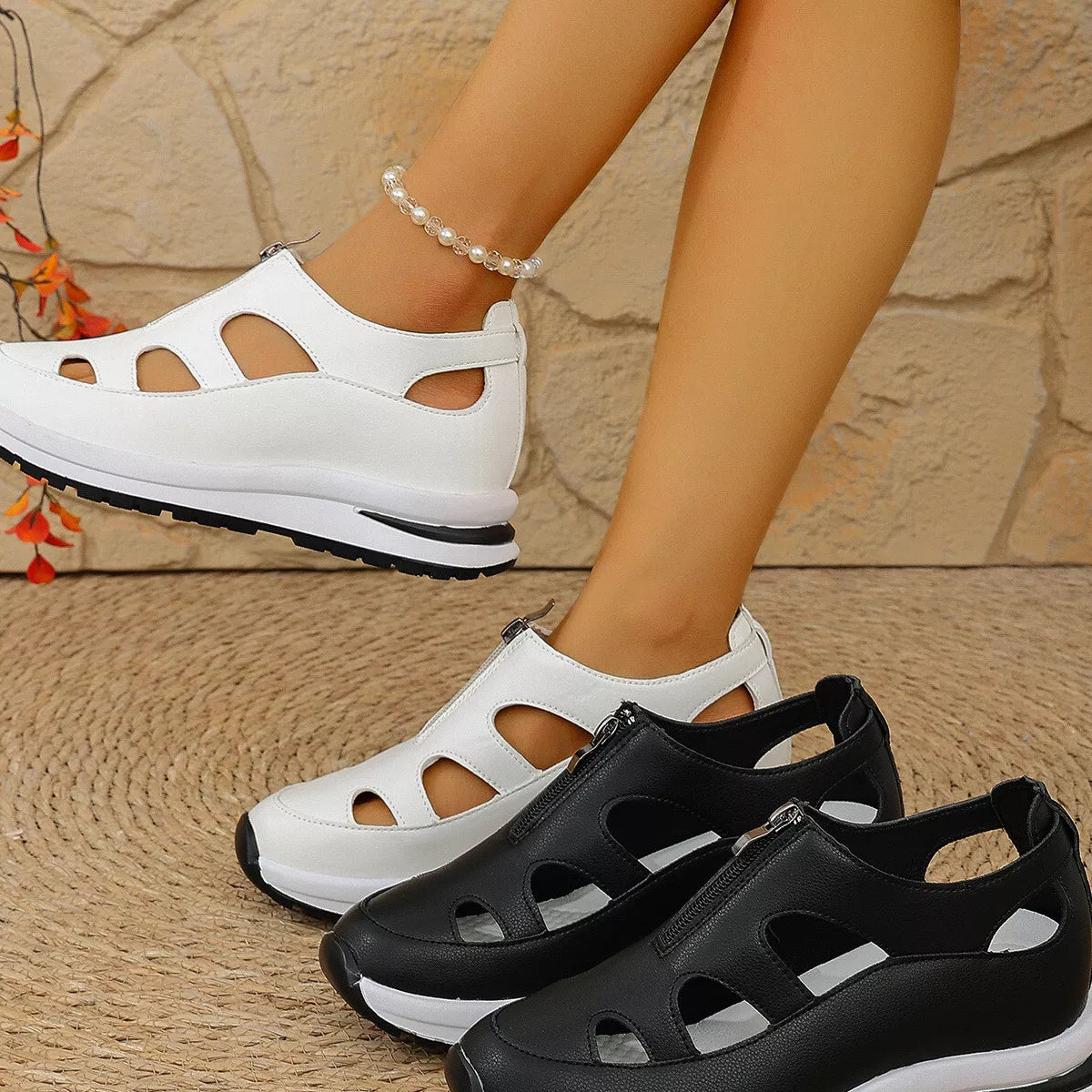 Cutout Zipper Wedge Sneakers