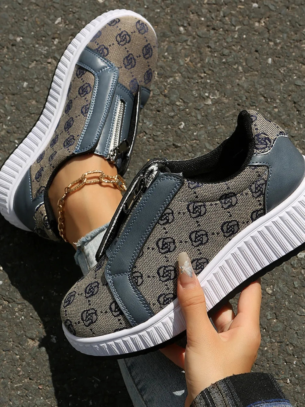 Floral Round Toe Sneakers with Zip