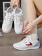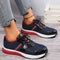 These stylish round toe platform sneakers feature a modern athletic design with eye-catching color block detailing in navy blue, black, and red accents. The breathable mesh and synthetic leather upper provides durability and comfort, while the platform sole adds fashionable height. Perfect for casual everyday wear, these sneakers combine sporty functionality with fashion street style. The lace-up closure ensures a secure fit, and the cushioned insole offers superior comfort for extended wear.